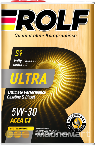 Полностью синтетическое моторное масло «Rolf Ultra SAE 5W-30 ACEA С3 API SN/CF» - изготовлено из высококачественных синтетических базовых масел (GTL + PAO) и многофункционального пакета присадок, гарантирует легкий запуск двигателя при низких температурах, превосходную защиту от износа, препятствует образованию отложений, обеспечивая максимальную мощность и производительность двигателя в любых условиях эксплуатации, обладает надежной защитой систем снижения токсичности выхлопов.